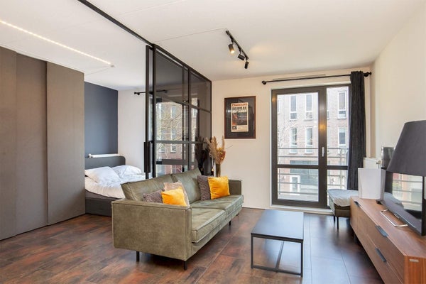 Fully furnished studio / 1room apartment on IJburg This studio has a living area of 50 m2. The living area is seperated by a moving wall from the sleeping area. Your private balcony is facing southeast and is perfect for a cup of coffee. The kitchen is fully equipped and features cabinets and ...Transfer