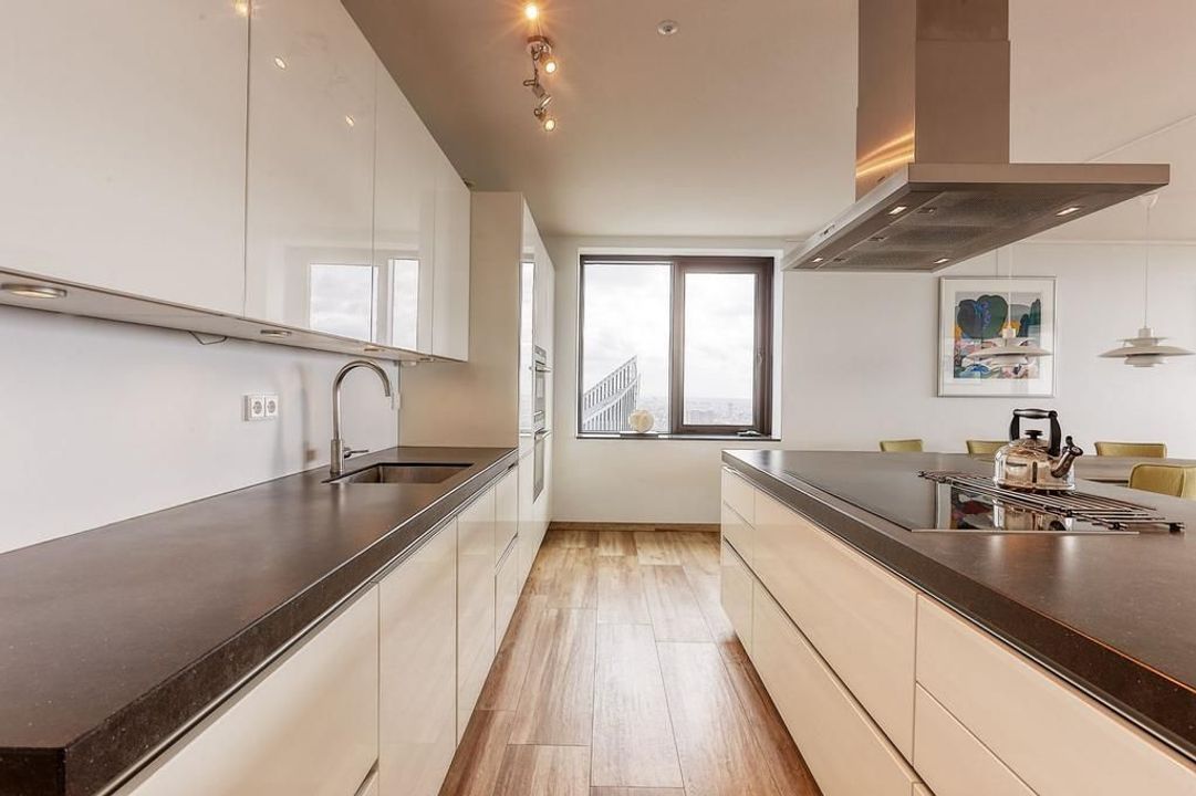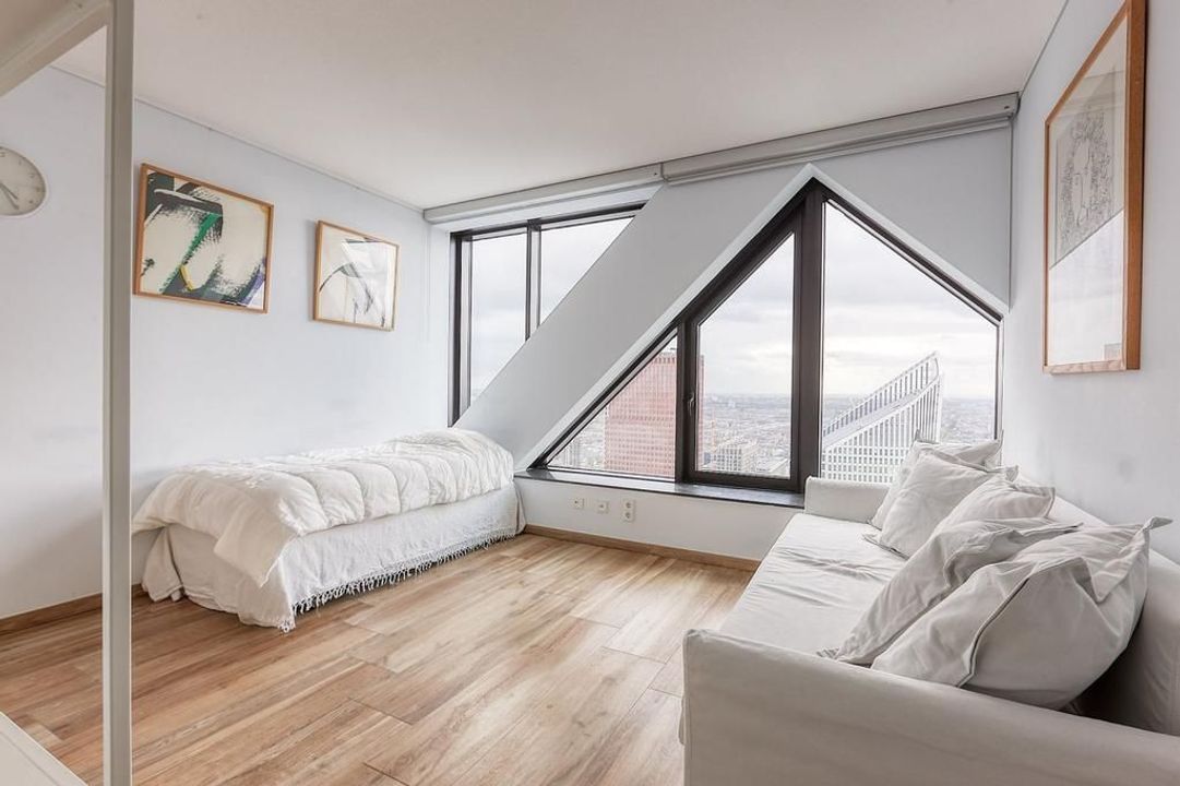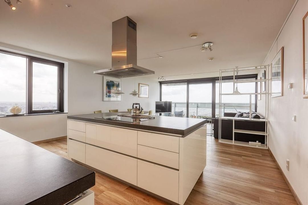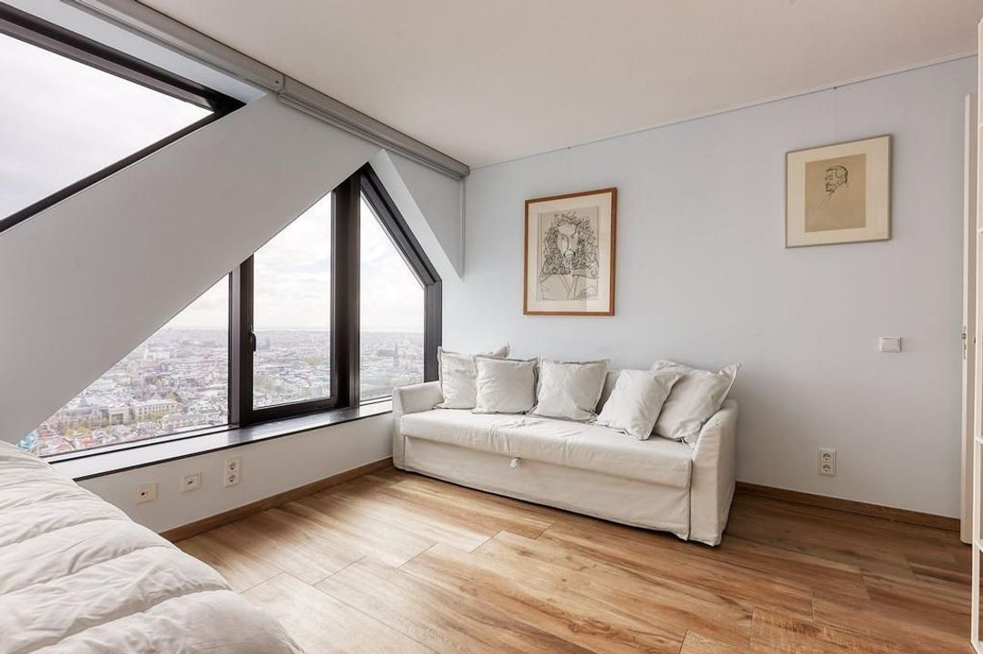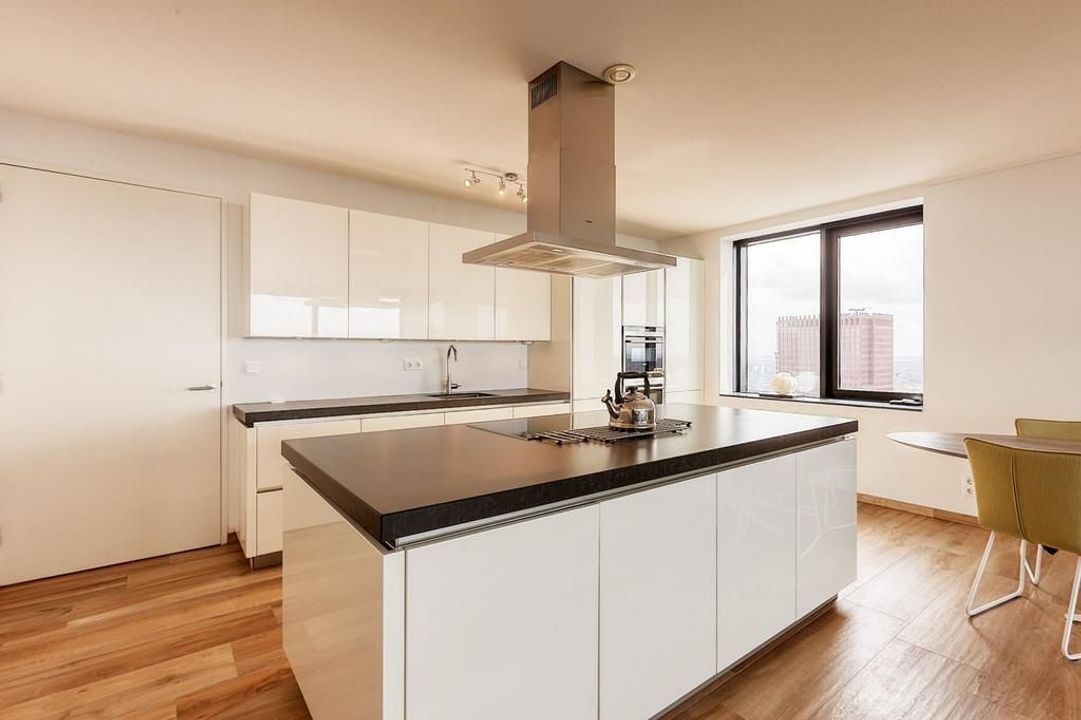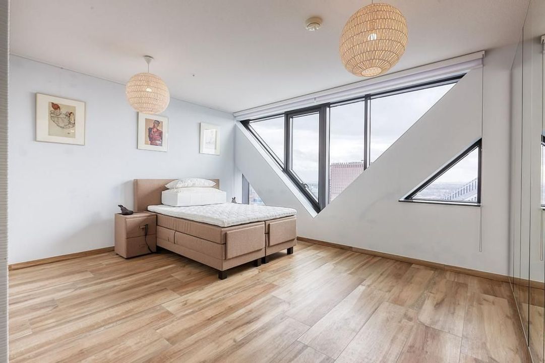 This modern apartment, built in 2013, is located just 50 meters from The Hague Central Station, offering direct access to public transport and nearby motorways. The building features a welcoming entrance with a reception, concierge, and elevators to the 39th floor. The spacious living room of about ...Transfer
