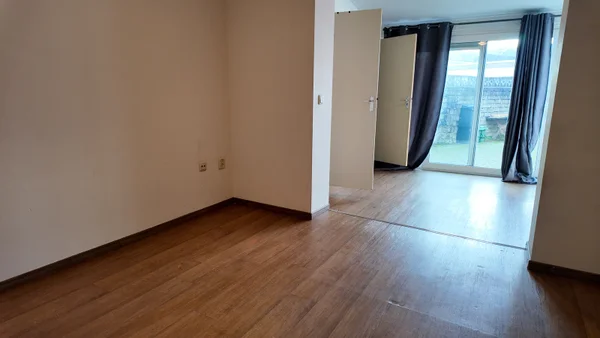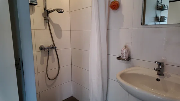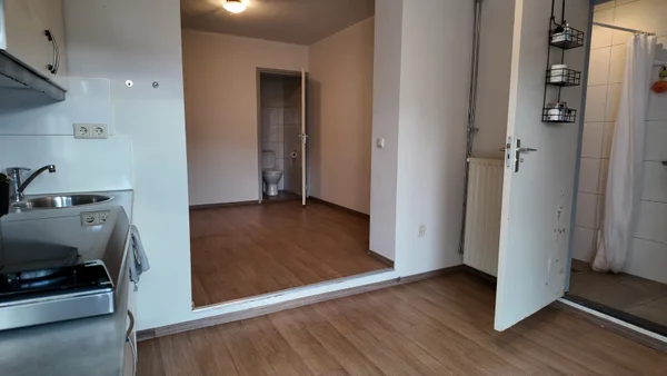 Nice studio situated on the ground floor. The studio has a living/bedroom with open kitchen (fridge and electric stove), bathroom with shower and sink, separate toilet. There is also a common garden with bicycle shed.Transfer