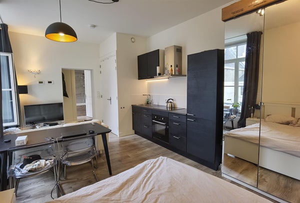 Trendy, fully furnished studio just a stone's throw from the Vrijthof, right in the heart of the vibrant city center. The studio features a stylish bathroom and a modern kitchen, perfect for comfortable urban living. As a bonus, you can enjoy a cozy rooftop terrace where you can truly unwind. ...Transfer