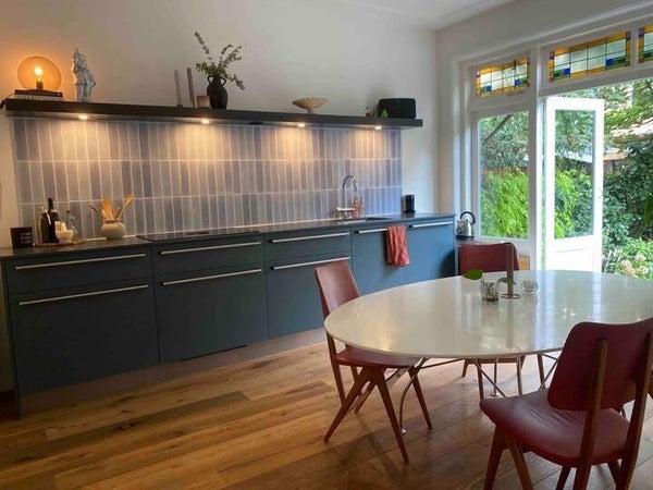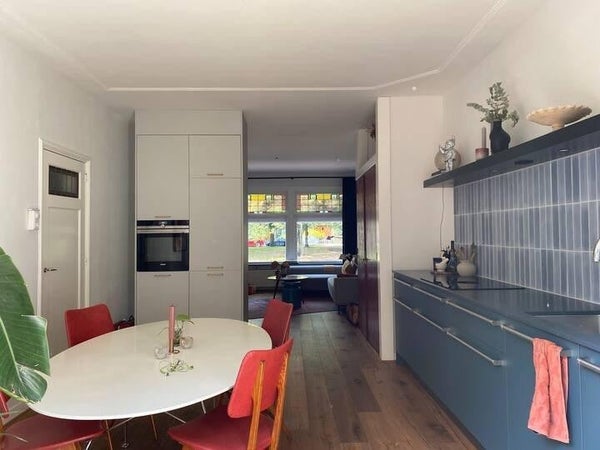 Spacious and fully furnished apartment of 80m2 located in Blijdorp on the ground floor with 80m2 garden and adjoining bedroom. The apartment also has 2 small offices. Equipped with a completely new custom made kitchen, a spacious sitting room with a large dining table, bathroom including bath, ...Transfer