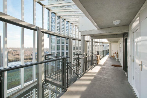 Licht en lofty appartement (99m²) op de bovenste verdieping (8) met fraai uitzicht op de Westelijke skyline van Amsterdam en de Amstel. Grote woonkamer met open keuken en serre badend in een zee van licht. Let op: de woning wordt beperkt gemeubileerd opgeleverd. Meubels in het appartement komen ...Overdracht