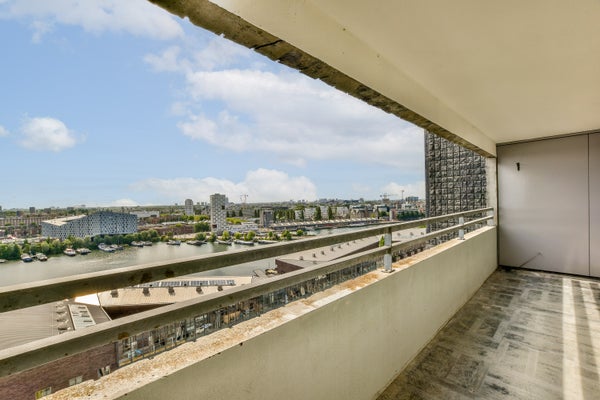 Royaal en comfortabel driekamer appartement van ca 86m2 gelegen op de veertiende verdieping met een fantastisch uitzicht over het IJ en de skyline van Amsterdam. Indeling: Gemeenschappelijke entree; via de lift bereikt u de woning op de veertiende verdieping. Hal met direct links de ...Overdracht