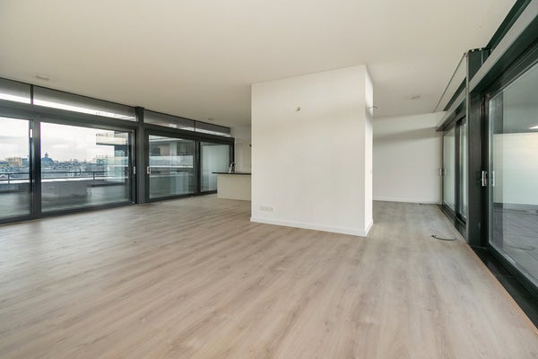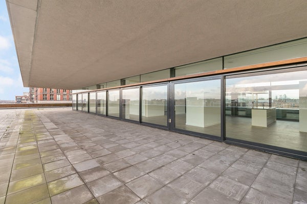 Dit appartement is een penthouse met een uniek terras dat een prachtig uitzicht over het IJ biedt. Bij binnenkomst zie je de woonkamer met een kookeiland en een schuifpui naar het enorme terras. De hal beschikt over een separaat toilet, een badkamer met een inloopdouche en dubbele wastafel, en een ...Overdracht