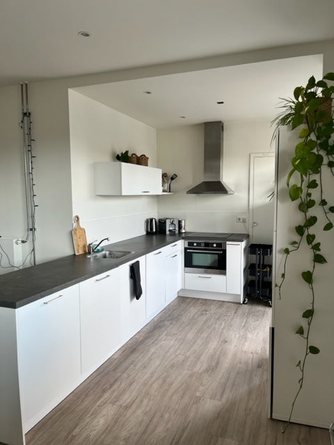 Niet geschikt voor woningdelers! Volledig gerenoveerd 3-kamer appartement in het centrum, gelegen op de tweede verdieping, met een eigen parkeerplaats op afgesloten terrein. Ruime entree met video intercom en toegang tot de woonkamer van ca 55m2 met een open keuken vv alle apparatuur, kookplaat, ...Overdracht
