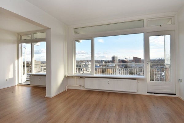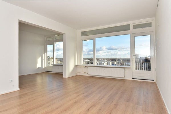 Gelegen op de tiende verdieping vindt u dit ruime en goed onderhouden 4-kamer appartement. Vanwege de hoeklocatie heeft u een prachtig uitzicht, inclusief een beetje zeezicht en een blik op Rotterdam bij helder weer. Met een woonoppervlakte van ongeveer 95 m² biedt het appartement een lichte ...