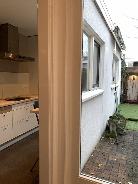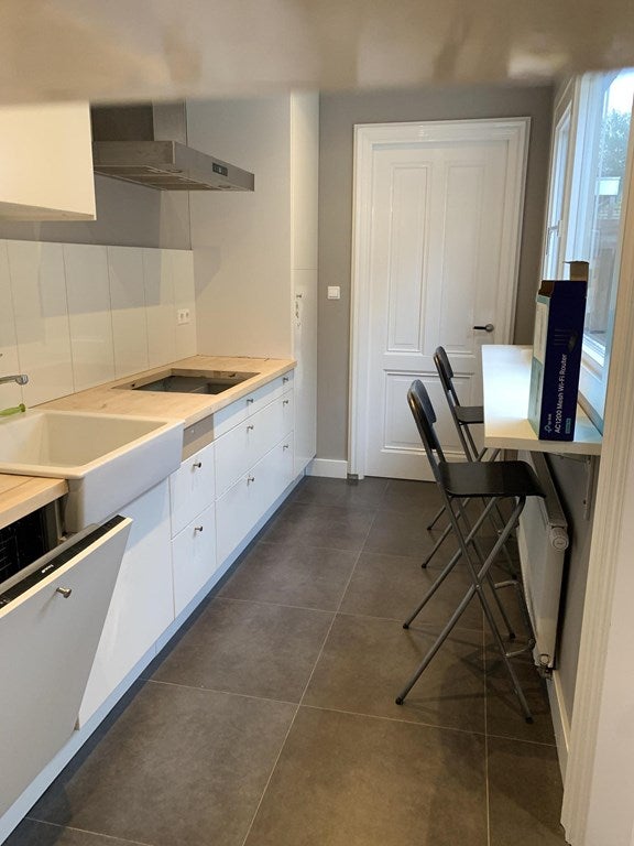 Dutch text below: Completely renovated, furnished 2 bedroom apartment with small garden. New, but keeping the leaded lights everywhere and preserving the cosy atmosphere. Lots of cupboard space, spacious kitchen with built in equipment, new bathroom with walk in shower, towel radiator, washbasin ...Overdracht