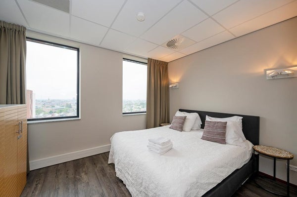 SHORT STAY | 3 TOT 6 MAANDEN Volledig gemeubileerd en gestoffeerd 3-kamer appartement in de Eschertoren Leiden. Gelegen op de 11e etage. Instapklaar en geschikt voor tijdelijk verblijf. FINANCIEEL (alle bedragen incl. btw) Maandelijks te betalen Huurprijs: € 1.784,75 Tijdens de huur wordt ...Overdracht