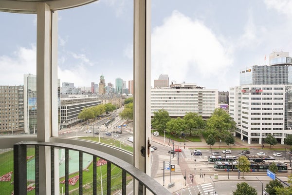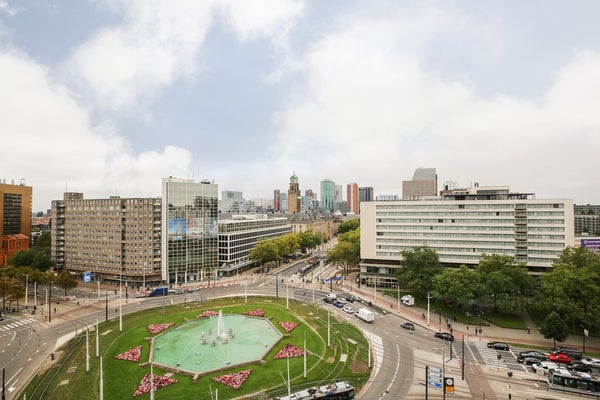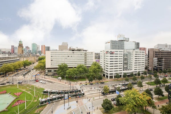 TE HUUR: Een fantastisch uitzicht over de Hofplein fontein! Op deze zeer centraal gelegen locatie hebben wij dit prachtige volledig gerenoveerde gemeubileerde 3-kamerappartement op de 11de verdieping te huur. Het appartement bevat 90 m2 en heeft in totaal 2 slaapkamers. Het appartement is gelegen ...Overdracht