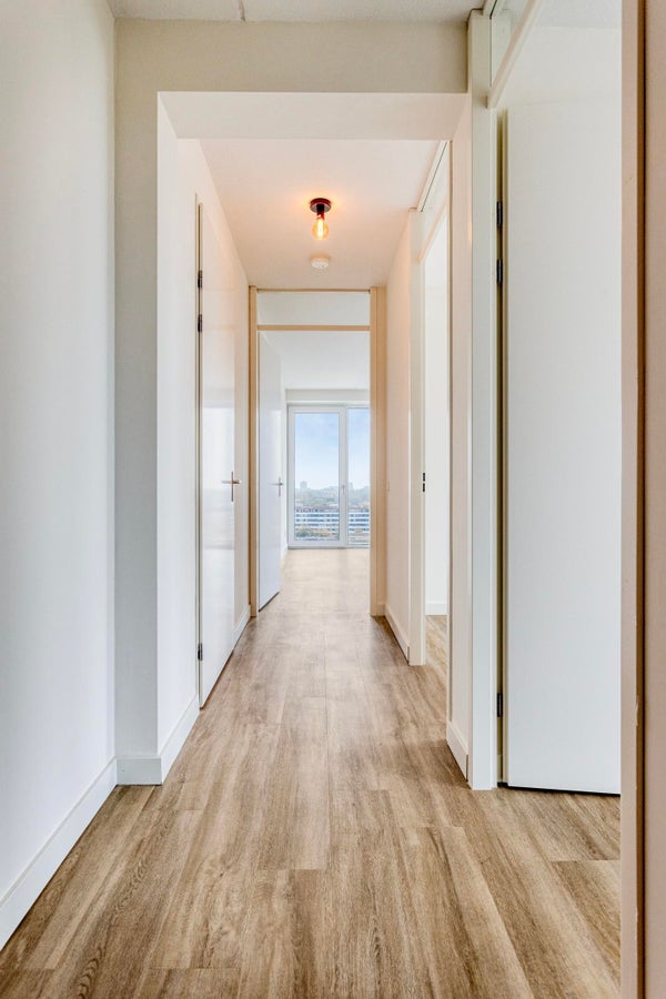 Licht en modern 3-kamer hoekappartement met balkon en panoramisch uitzicht over de skyline van Rotterdam - nieuwbouw met parkeergarage Op een mooie locatie in Rotterdam ligt dit nieuw gebouwde, moderne en praktisch ingedeelde hoekappartement met twee slaapkamers, een balkon en een spectaculair ...