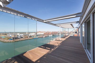 Goals: dit luxe penthouse in Scheveningen van 273m2!Dit pareltje ligt op de zevende verdieping en heeft een 360° uitzicht vanaf het dakterras. Door de glazen wanden zit je hier al vroeg in de lente lekker buiten in de zon. En wil je na een tijdje wat anders dan alleen het dakterras? Dan wandel je in een paar minuten naar het strand.